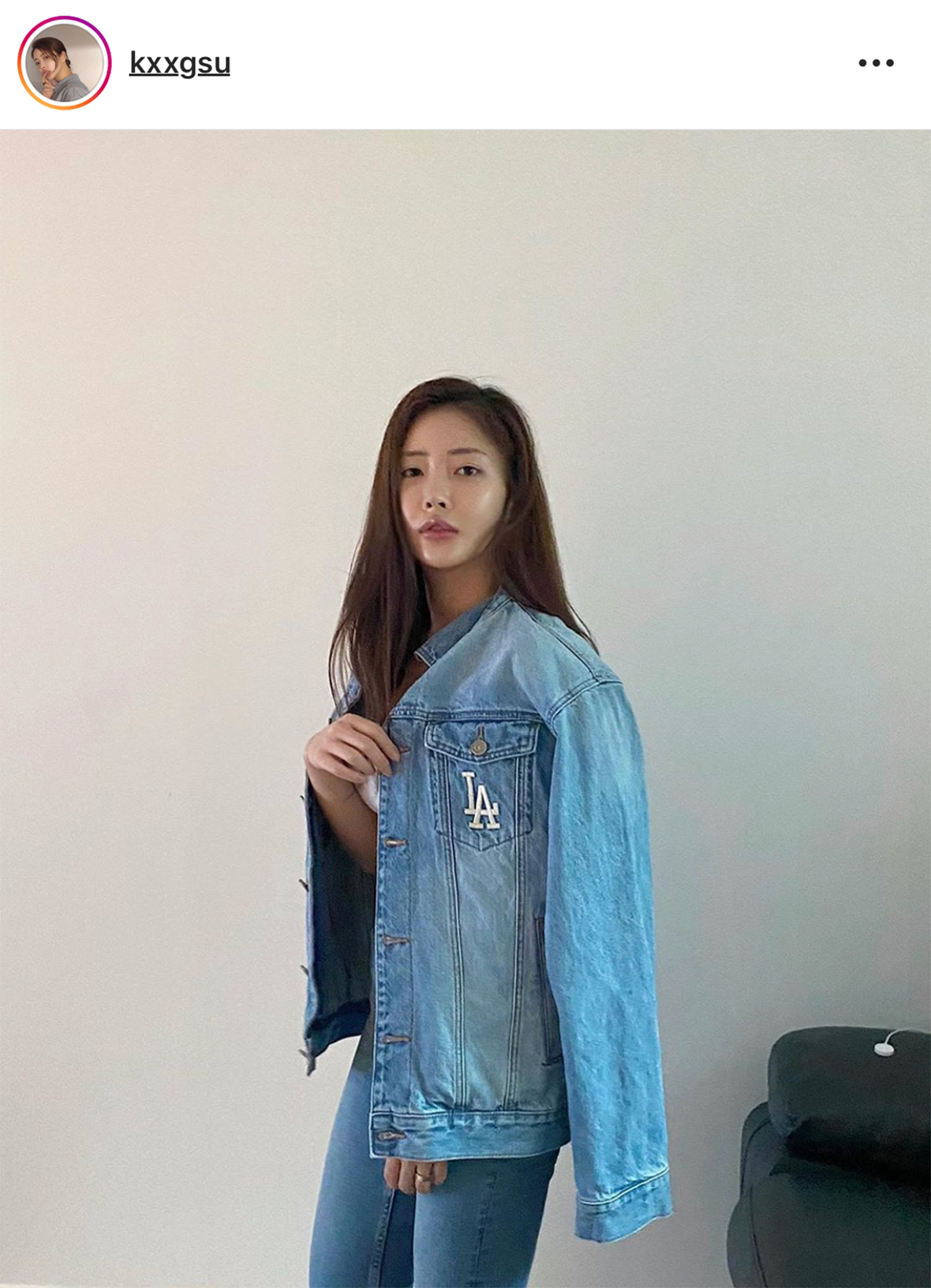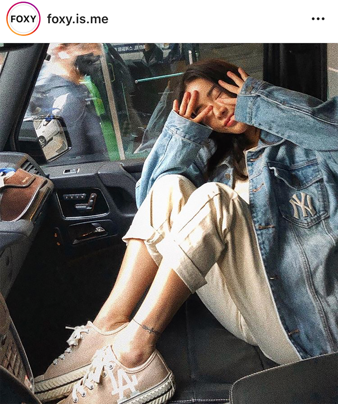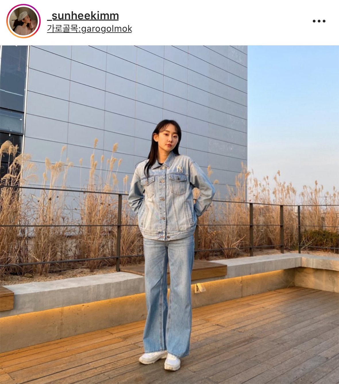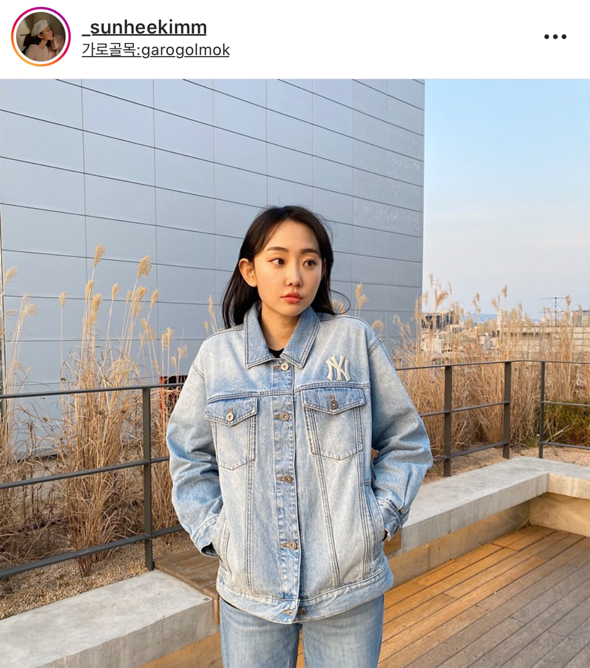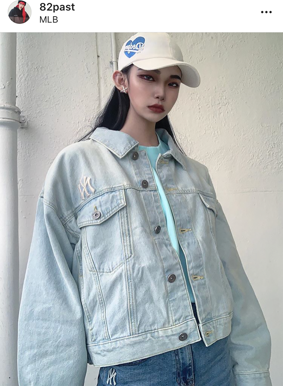 20春夏'复古新潮'最适合的MLB-CREW金善姬牛仔穿搭!