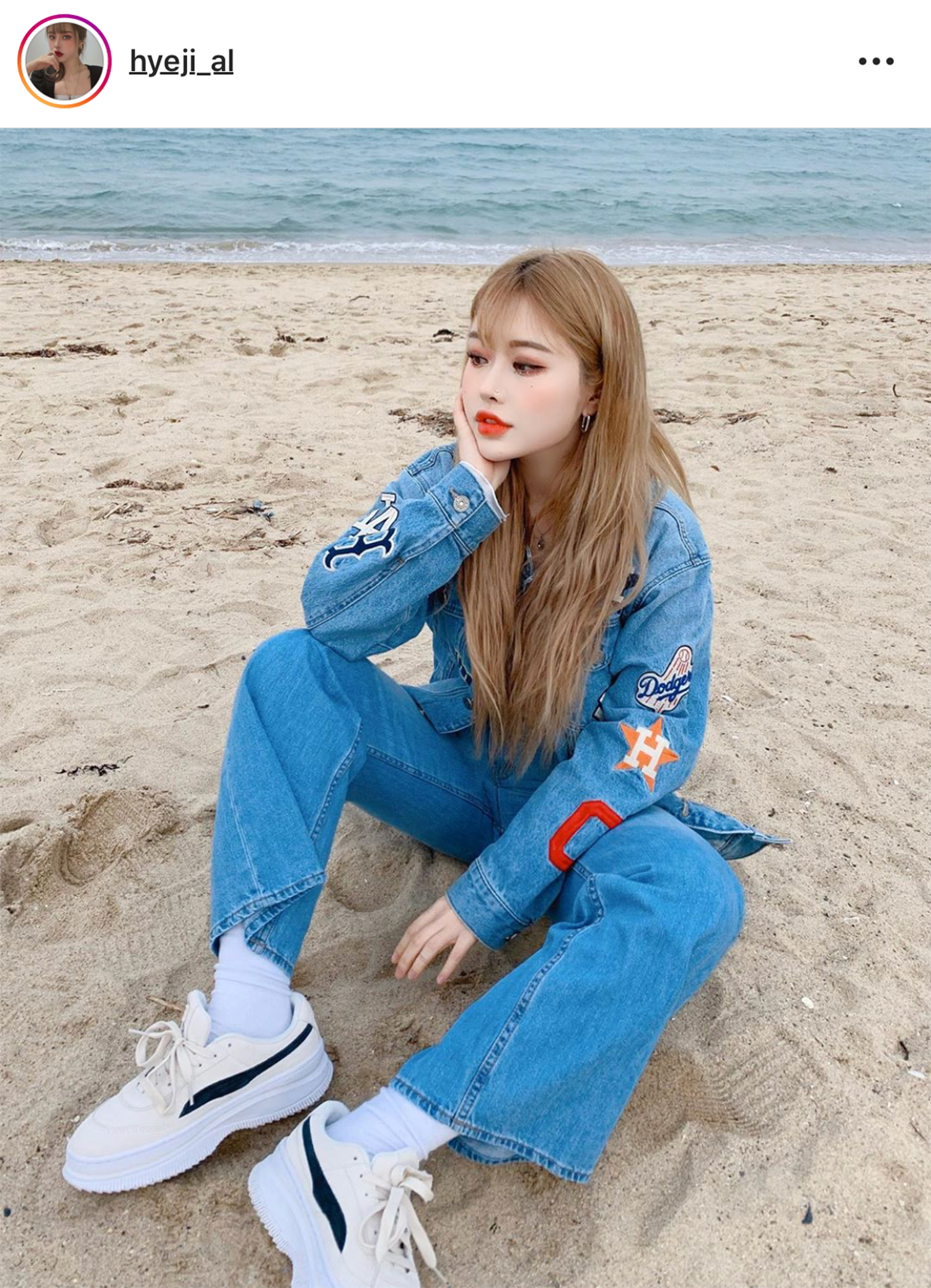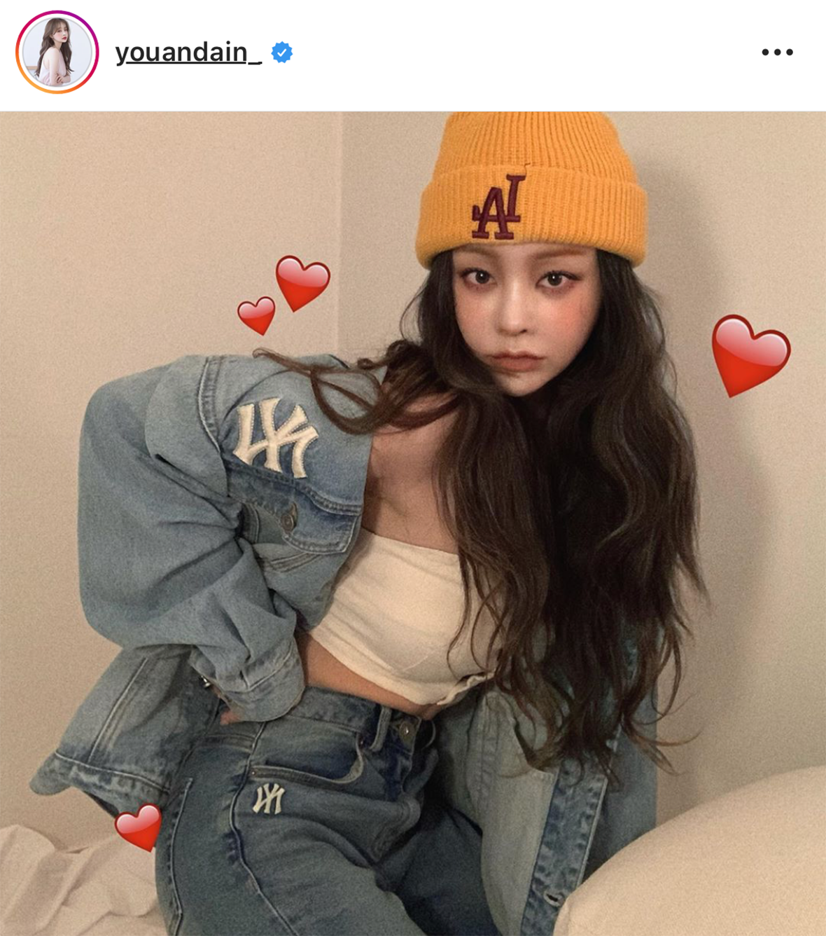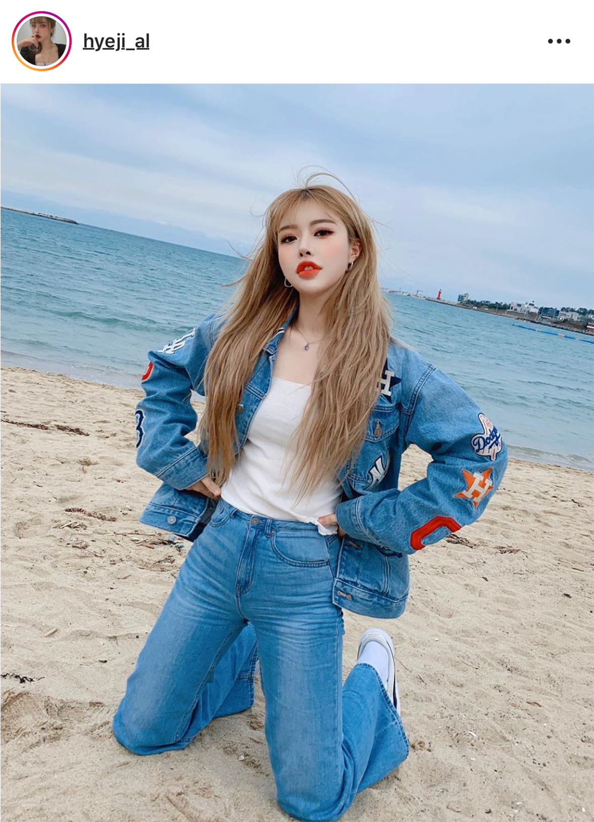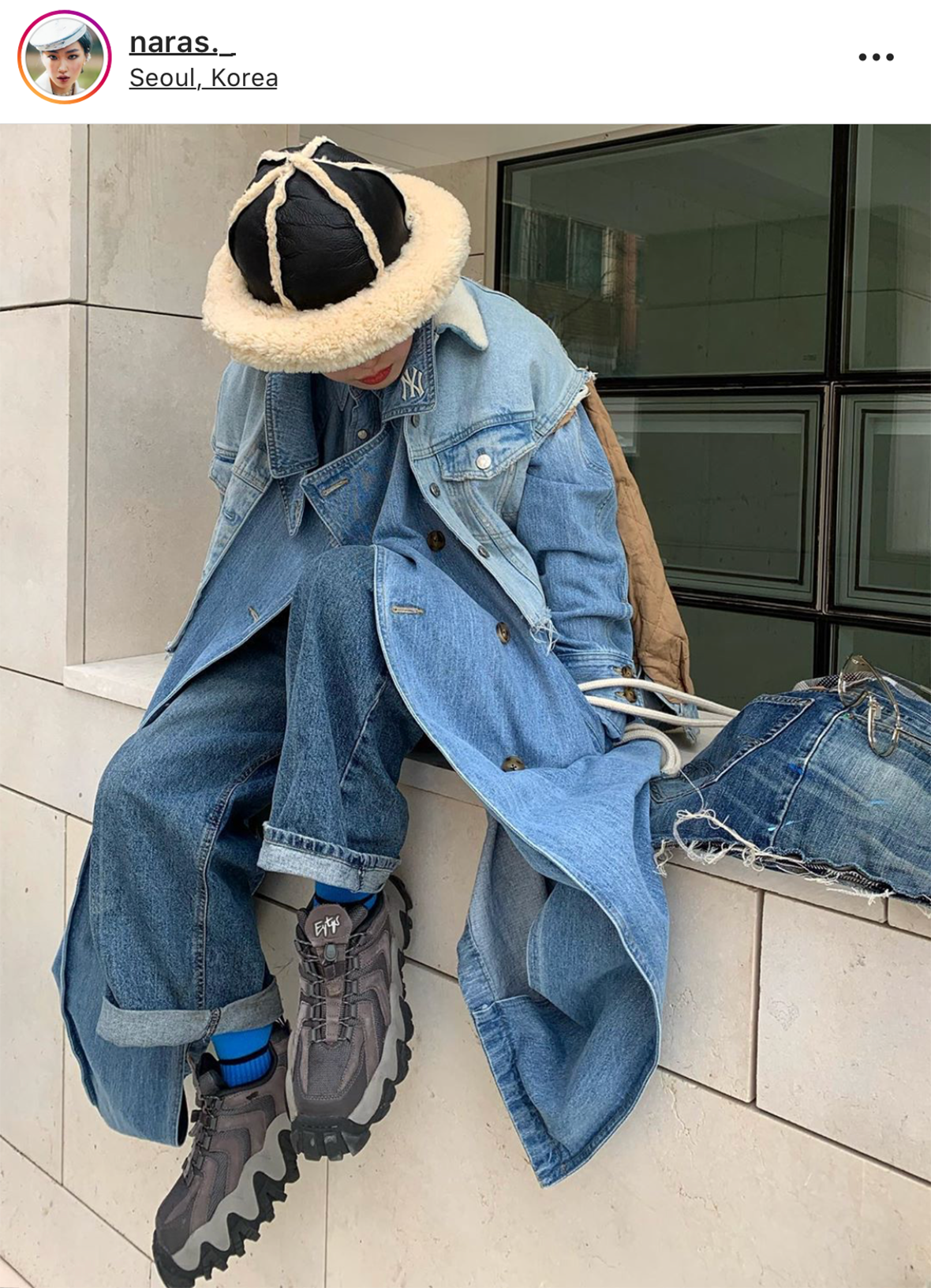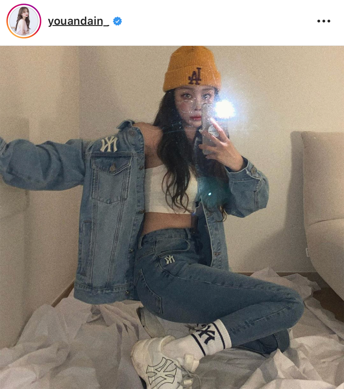 20春夏'复古新潮'最适合的MLB-CREW金善姬牛仔穿搭!