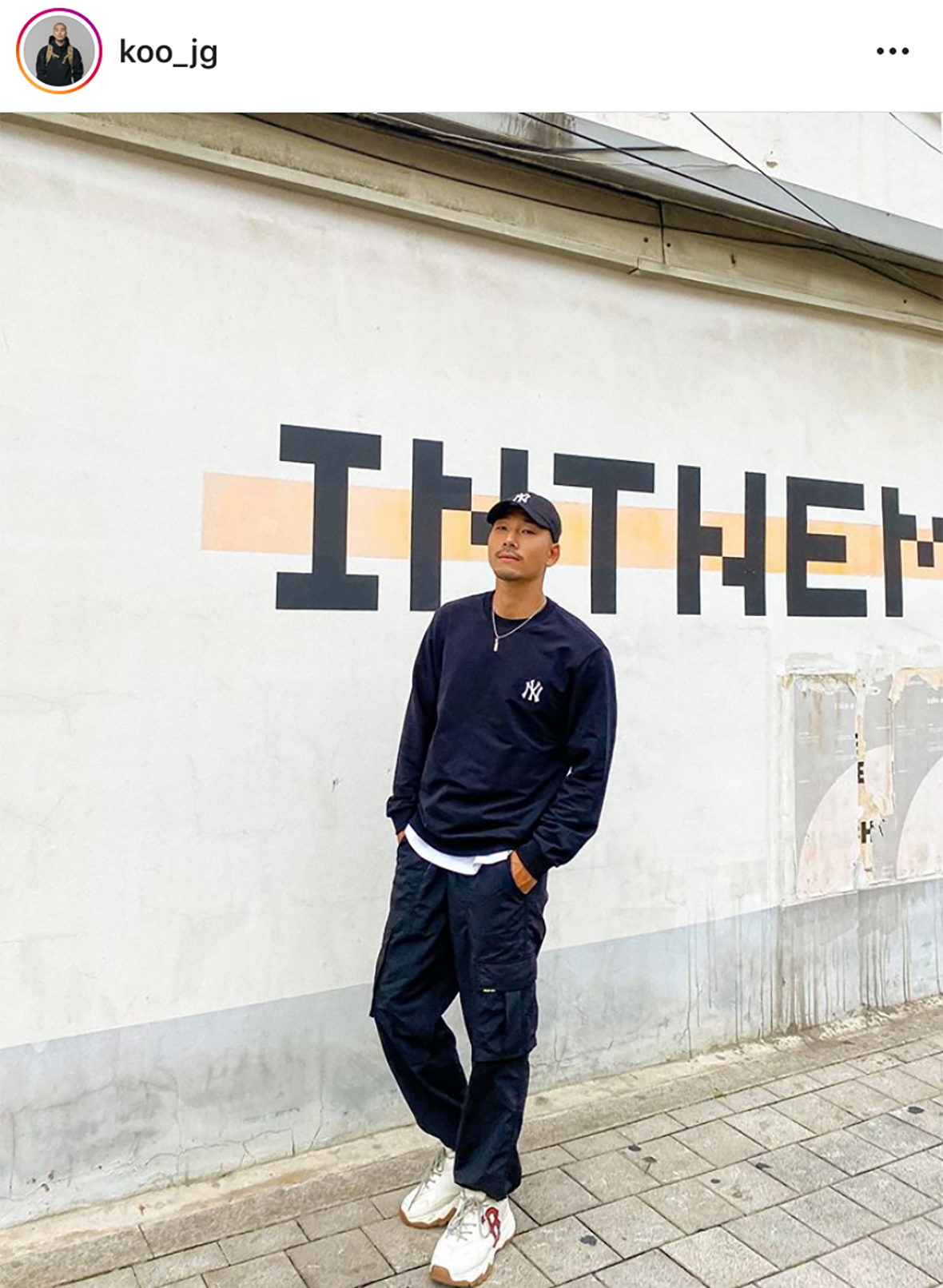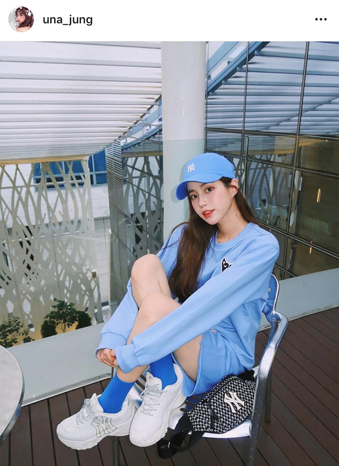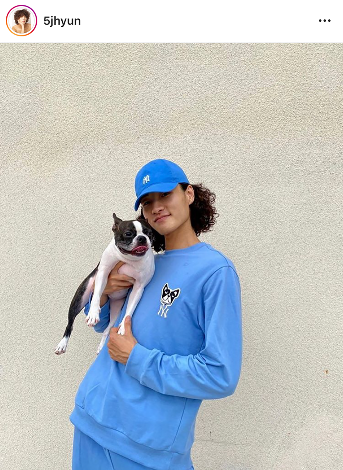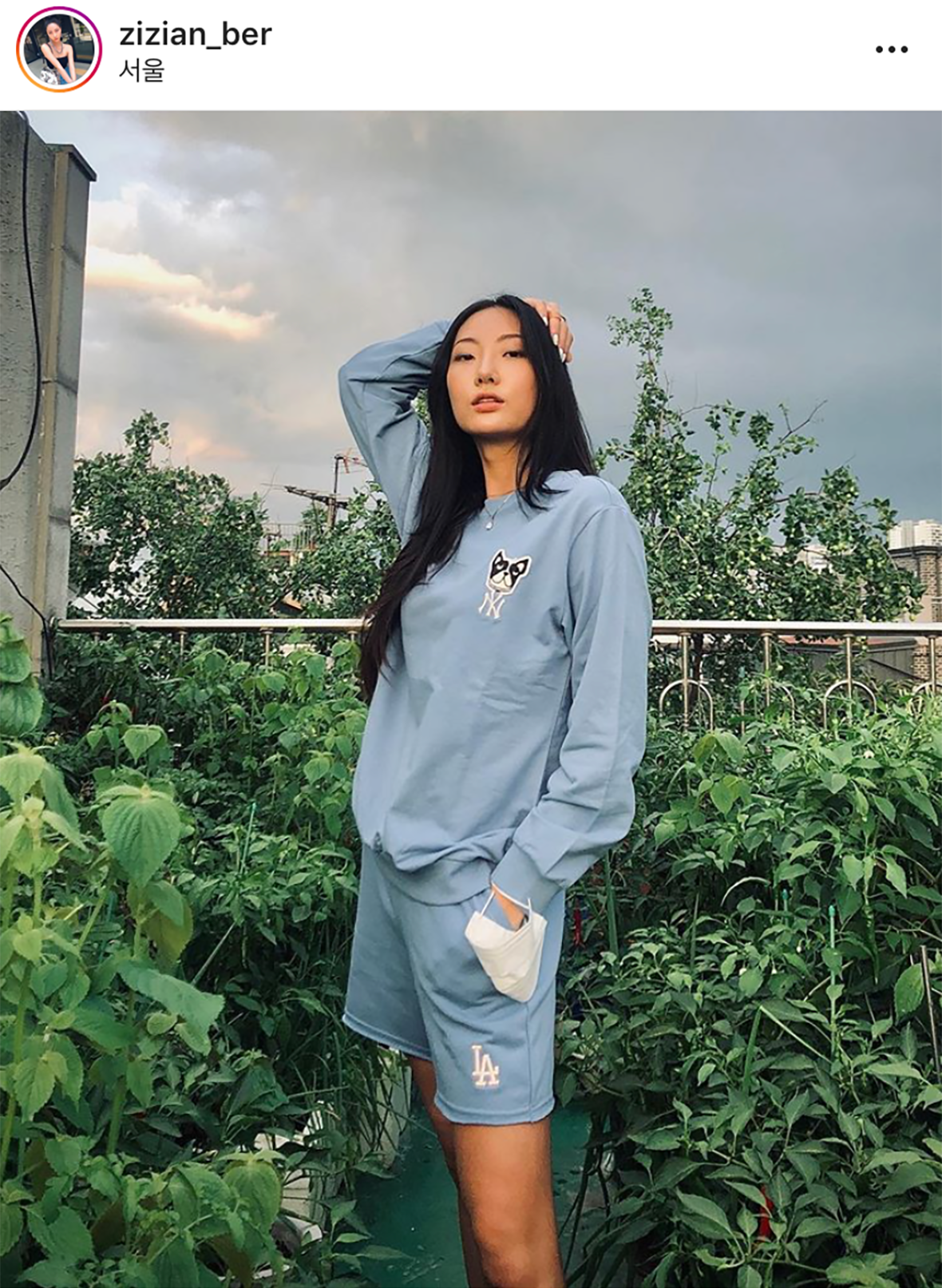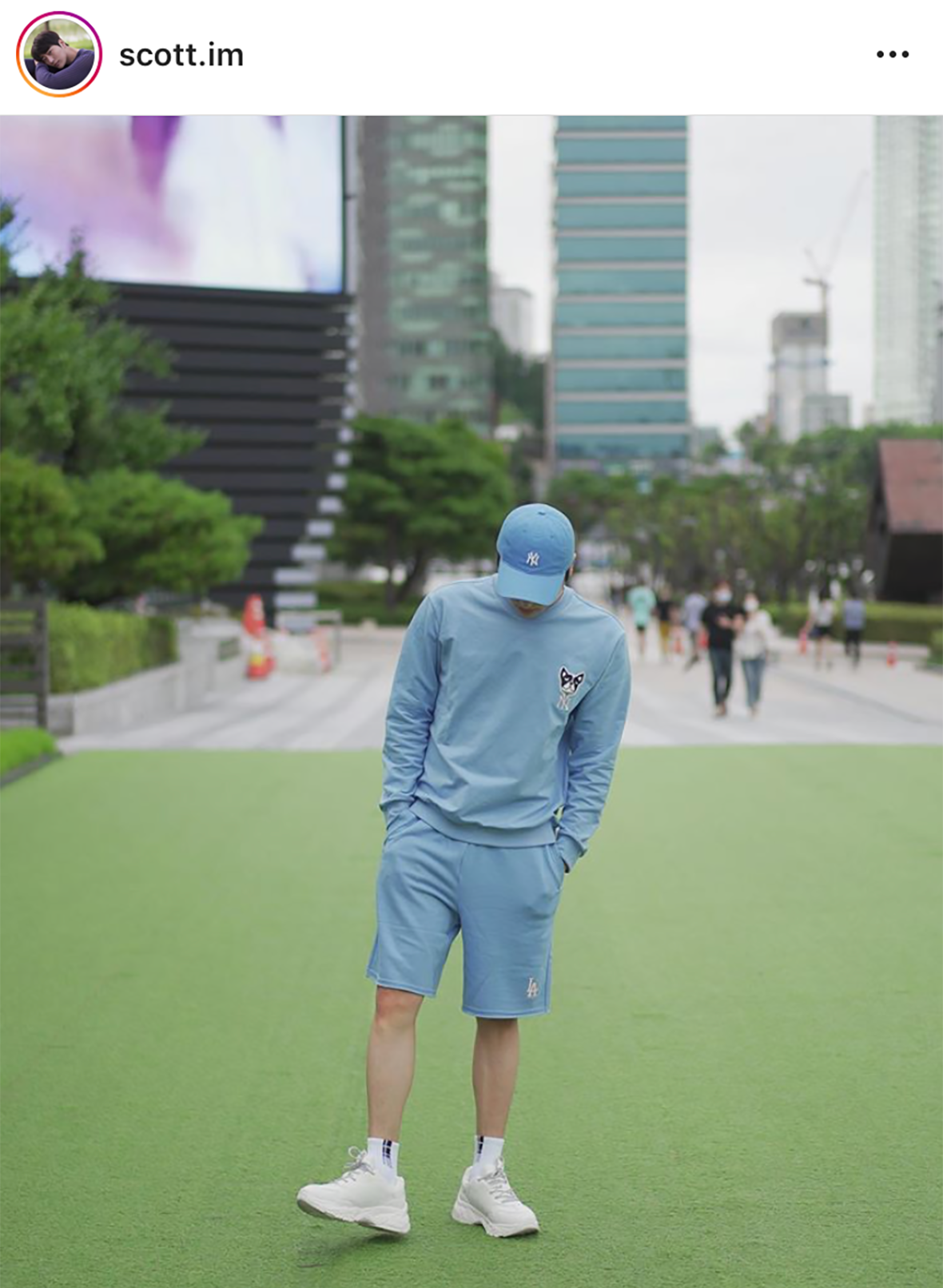 MLB CREW 吴宰贤以蓝色系来搭配展现出散步装。