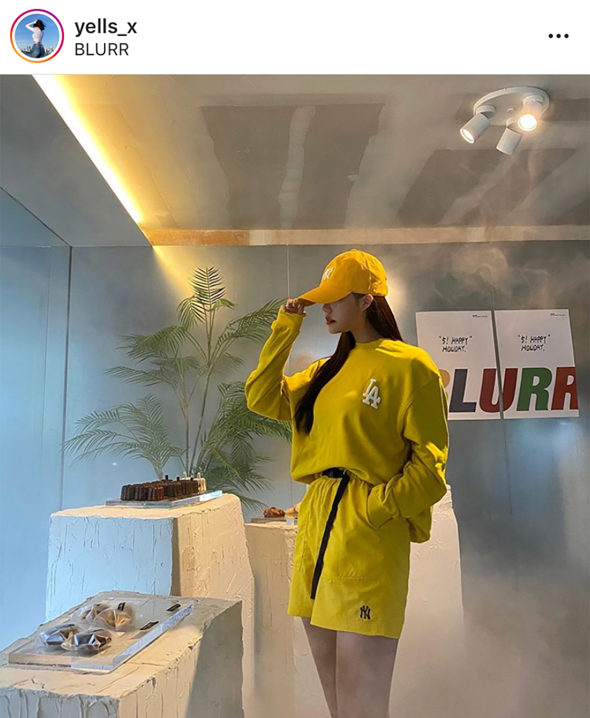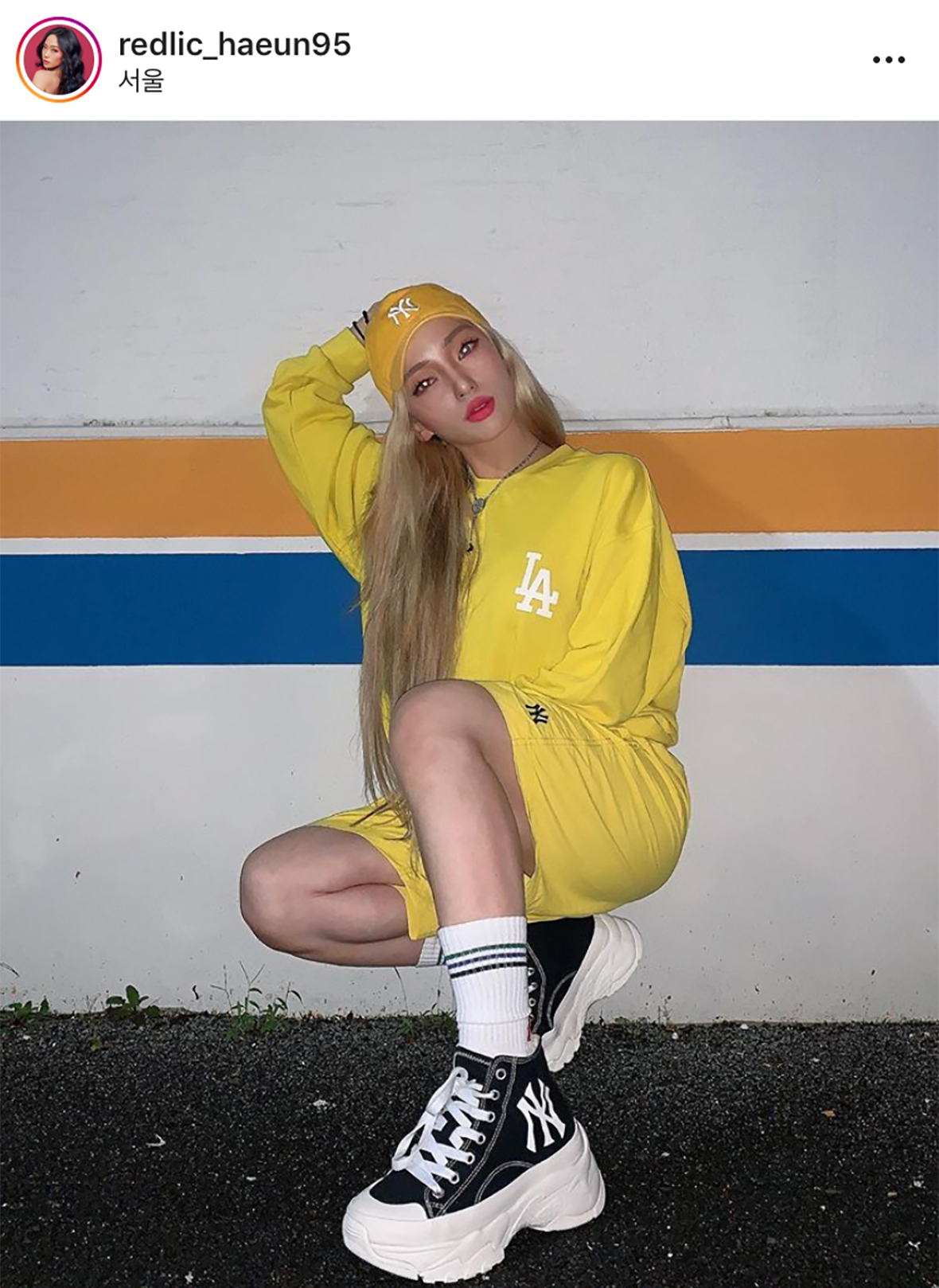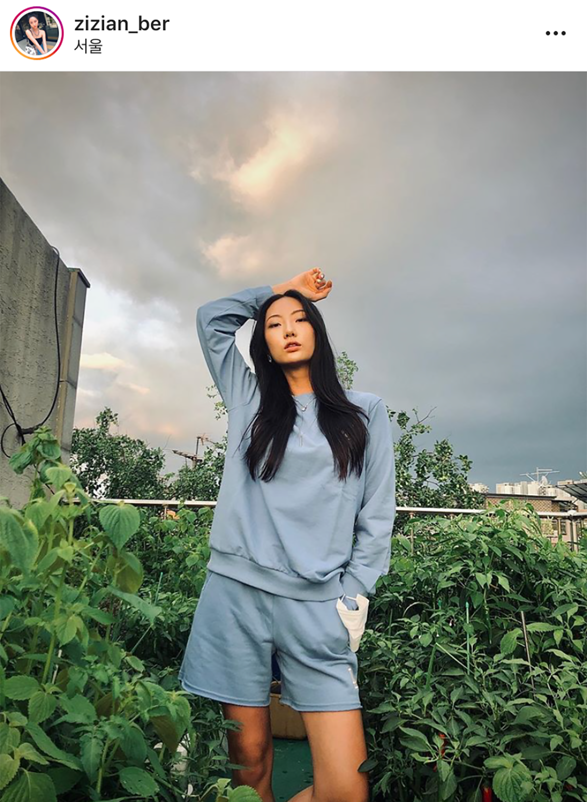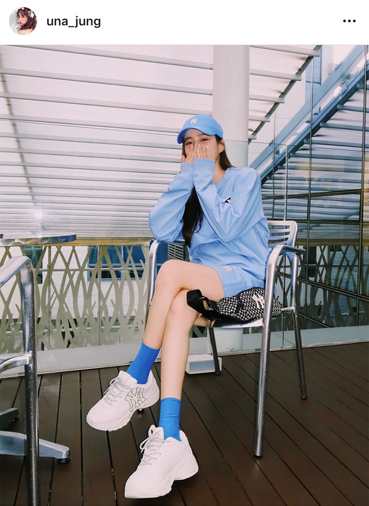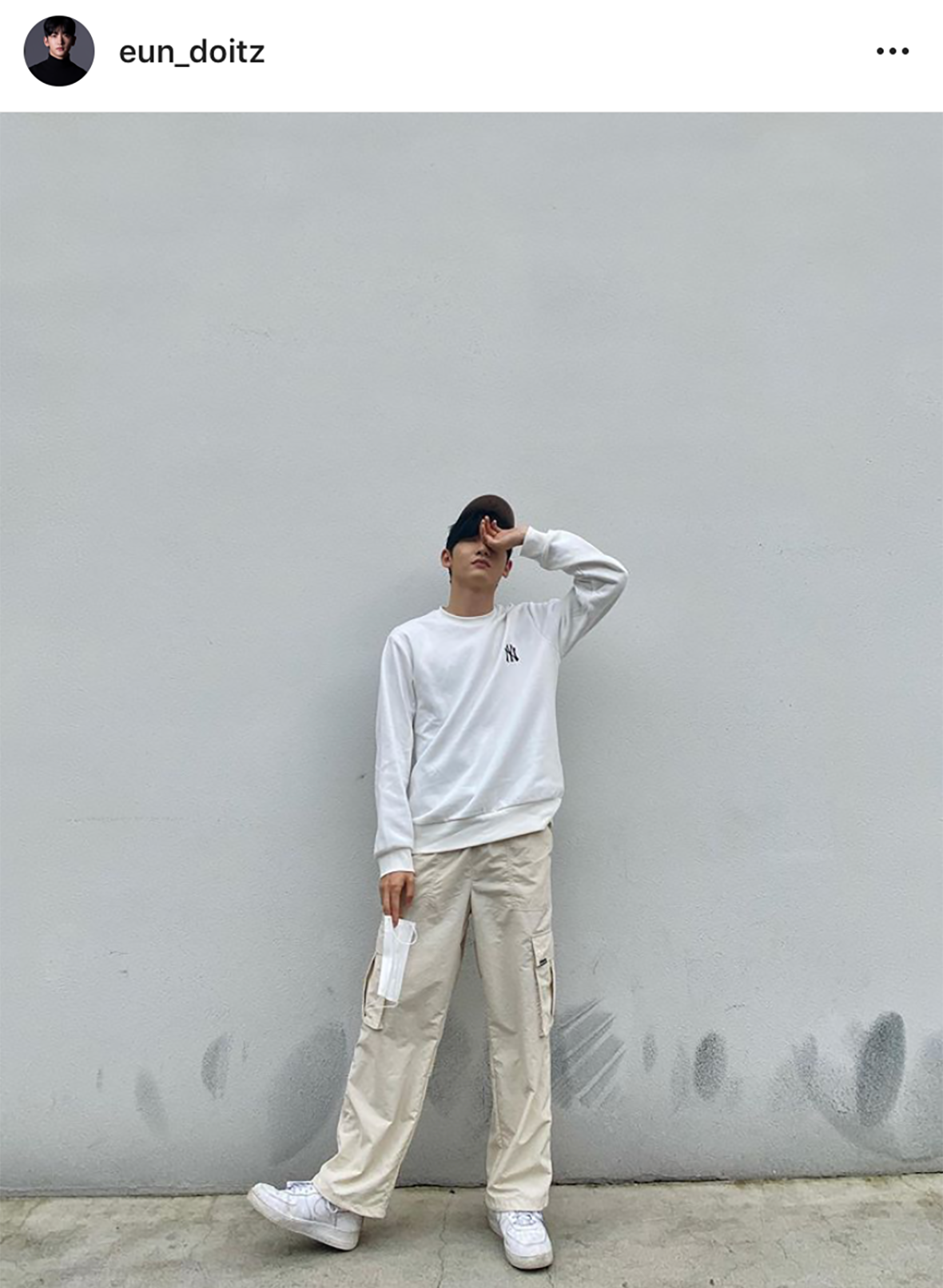 MLB CREW 吴宰贤以蓝色系来搭配展现出散步装。